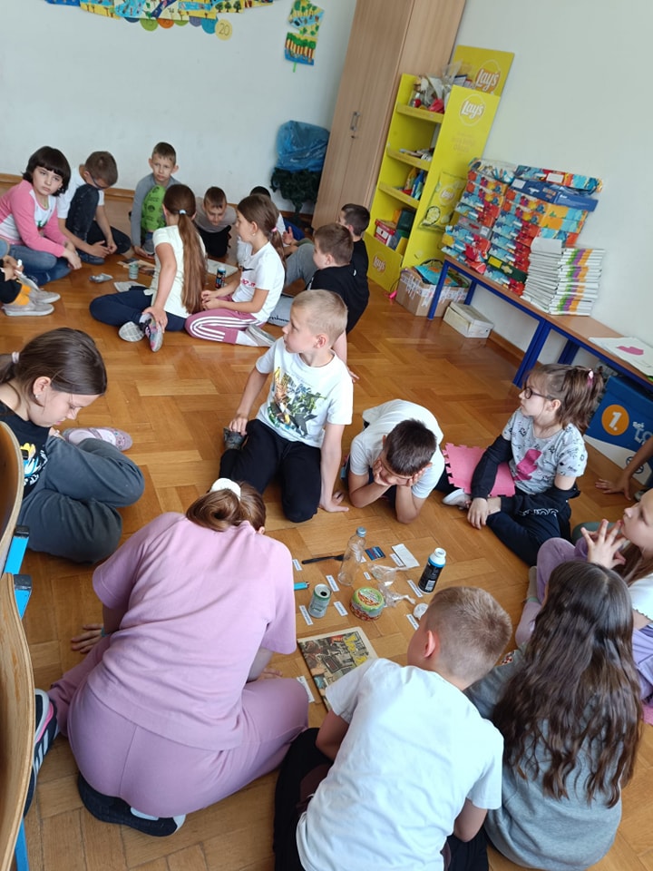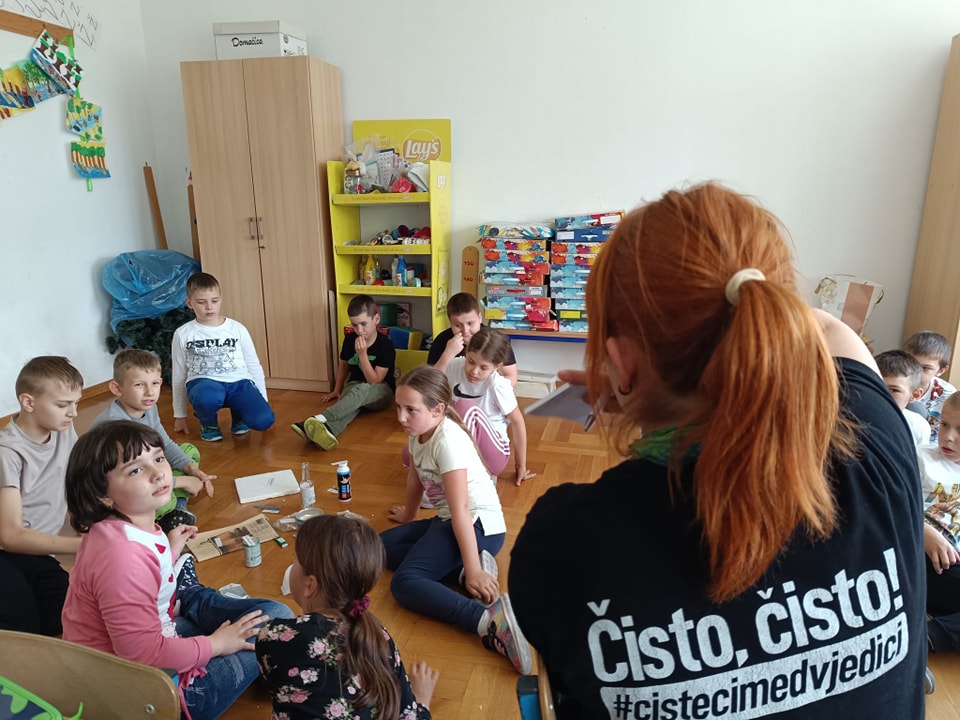 U školskoj godini 2024./2025. proveli smo dva ciklusa edukacija. U svakom ciklusu je sudjelovalo po tri razreda, a svaki ciklus uključuje šest radionica, što je ukupno 36 radionica na projektu. Radionice kombiniraju razgovor, grupni rad i praktične aktivnosti kako bi učenici kroz neformalne metode naučili konkretne primjere o hijerarhiji kružnog gospodarenja otpadom, recikliranju, prenamjeni predmeta, zaštiti okoliša i osnovama aktivnog građanstva.